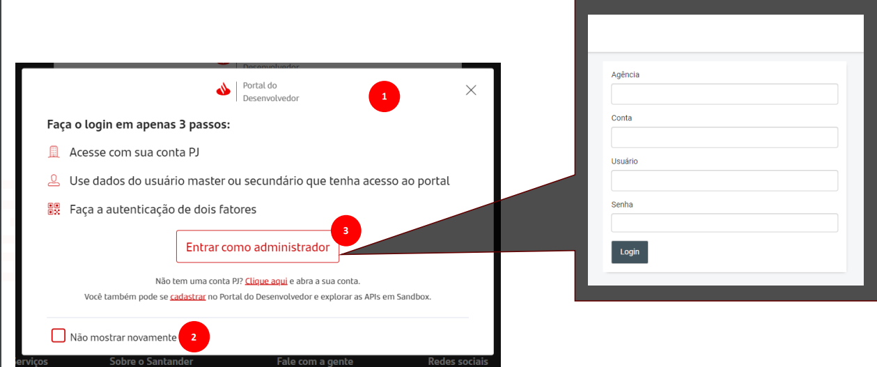 2. Pode optar por “Não mostrar novamente” (nos próximos acessos, irá direto para o login);